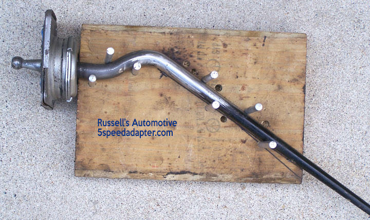 Before starting this project I took X, Y & Z data from the tip of the stock floor shift lever in neutral. Once the T5 was installed I took the data and found that I needed to use 17” of the stock ’35 shift lever. The angle of the S-10 shifter needed only a 5-degree change to intersect the data point. A very simple jig held everything in place for the welder.