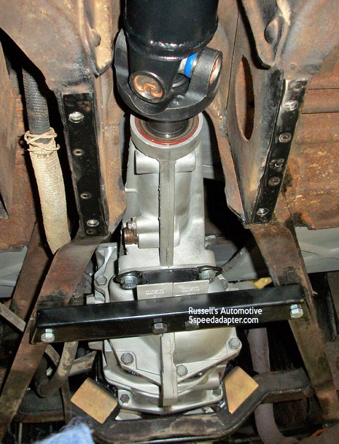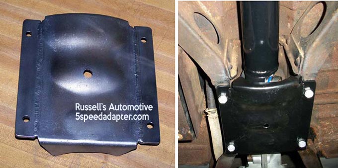 I learned that the rear edge of the adapter plate touched the crossmember so I had to modify that portion of the lower edge. This change has now been incorporated to the adapter design.